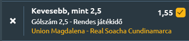 - Ez pedig már Kolumbia, ahol az Unión Magdalena hazai pályán fogadja a Real Cundinamarca csapatát. A hazaiak jó formában vannak, és a vendégek is kiegyensúlyozott formát mutatnak az utóbbi időben. Az Unión Magdalena utolsó öt meccséből négyet megnyert, legutóbb 1–3-ra győzött a Barranquilla ellen, szezonátlaga 1,71 rúgott és 0,86 kapott gól meccsenként. A Real Cundinamarca utolsó öt találkozójából kettőt nyert, egy döntetlen és két vereség mellett átlagosan 1,2 gólt szerzett és 1,0-t kapott. A két csapat egymás elleni utolsó négy mérkőzéséből az Unión Magdalena hármat nyert, a Real Cundinamarca egyet, gólátlaguk 1,3, illetve 0,5. Kevesebb, mint 2,5 gól várható, mert a statisztikák szerint a találkozók többsége visszafogott gólszámú, a vendégek ritkán találnak be, és a hazaiak is kontrollált, stabil játékra törekednek.
