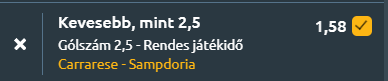 - Ez pedig már a napfényes Itália, ahol a Serie B küzdelmeiből hoztam kettőt. A Carrarese legutóbb 1–1-es döntetlent játszott a Juve Stabiával, és az utóbbi öt meccsén nyeretlen maradt, három döntetlen és két vereség mellett, meccsenként egy rúgott és 1,4 kapott góllal. A tabellán a 12. helyen áll, mérlege kiegyensúlyozatlan, de nem kiugró. A Sampdoria még gyengébb formát mutat, az előző öt találkozójából hármat elveszített, kettőt döntetlenre hozott, legutóbb gól nélküli meccset játszott a Venezia ellen, és átlagban mindössze 0,4 gólt szerez ezeken a találkozókon. A bajnokságban a 14. helyet foglalja el, és szezonátlaga sem éri el az egy rúgott gólt meccsenként. Az egymás elleni mérleg kiegyenlített, mindkét csapat egy-egy győzelmet szerzett, egyszer döntetlen született. Kifejezetten szoros, kevés gólos mérkőzés várható, mivel mindkét csapat gyenge formában van és különösen a Sampdoria támadójátéka rendkívül visszafogott.