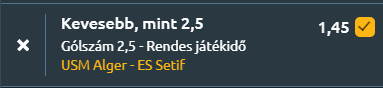 - Még mindig az egykori francia gyarmat, ahol alsóházi rangadó következik Algírban, az USM Alger az ES Sétifet fogadja. Itt a hazai csapat esélyesebb jóval, ezért a Sétif a döntetlen érdekében betolja majd a buszt a kapu elé! A hazai fölényt az egymás elleni mérleg is alátámasztja, hiszen az utóbbi öt meccsből hármat az USM Alger nyert meg. A legutóbbi találkozón idegenben 3–1-re győztek, és gólátlagban is felülmúlják riválisukat. A tabellán a 12. és a 13. helyen állnak, kiegyenlített pontszámmal, de visszafogott támadójátékkal. Az USM Alger legutóbb gól nélküli döntetlent játszott, és az utóbbi öt meccsén mindössze 0,8 gólt szerez átlagban, miközben ugyanennyit kap. Az ES Sétif legutóbb 1–0-ra kikapott, formája hullámzó, de támadásban sem kiemelkedő, egygólos átlaggal dolgozik. Underes gólos mérkőzés várható, mert mindkét csapat alacsony gólátlaggal rendelkezik, és nagy az esélye annak, hogy valamelyik fél gólképtelen marad.