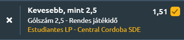- A gaucsók földjén járunk már, vagyis Argentínában, ahol az első osztály élmezőnyéhöz tartozó Estudiantes hazai pályán fogadja a visszafogott támadójátékáról ismert Central Córdobát, és minden jel arra mutat, hogy nem lesz könnyű feltörni egyik védelmet sem. Lássuk a számokat! Az Estudiantes stabil idényt fut, második helyen áll, mérlege 5 győzelem, 3 döntetlen és 2 vereség, miközben meccsenként mindössze 0,5 gólt kap, ami a liga egyik legjobb védelmét jelenti. Az utóbbi öt mérkőzésen három győzelem mellett két vereséget szenvedett, átlagban 1 gólt szerzett és csak 0,6-ot engedett. Két egymást követő 1–0-s vereség után legutóbb 2–1-re nyert idegenben a Gimnasia y Esgrima Mendoza ellen. Mérkőzései rendre alacsony gólszámot hoznak: az utóbbi 25 bajnokiján minden alkalommal 3,5 gól alatt maradt az össztermés, és az első félidőkben is jellemzően visszafogott a tempó. Hazai pályán ugyan két vereség után érkezik, de a második félidőkben rendre megtalálja a ritmust, hiszen az utolsó 11 hazai meccsén mindig született legalább egy gól a szünet után. A Central Córdoba szintén szoros mérkőzéseket játszik, 3 győzelem, 3 döntetlen és 4 vereség mellett meccsenként mindössze 0,5 gólt szerez és 0,7-et kap. Formája kiegyenlített, az utóbbi öt találkozón két győzelem, két döntetlen és egy vereség a mérlege, 0,8-as rúgott és 0,6-os kapott gólátlaggal. Idegenben azonban különösen visszafogott, öt mérkőzésen nyeretlen maradt, három vereség és két döntetlen mellett, és csak a legutóbbi vendégjátékán talált be először, amikor 1–1-es döntetlent játszott a Defensa y Justicia ellen. Mérkőzései szinte kivétel nélkül alacsony gólszámot hoznak: az utóbbi 16 bajnokiján mindig 3,5 gól alatt maradt az eredmény, az utolsó 11-en pedig 2,5 alatt is. Az egymás elleni mérleg kiegyenlített, az utolsó öt meccsen két-két győzelem mellett egy döntetlen született, a legutóbbi találkozón a Central Córdoba 1–0-ra nyert. A két csapat játéka egyaránt fegyelmezett és óvatos, kőkemény védelmek és defenzív felfogás jellemzi őket. Mindezekből fakadóan nem várható el ma sem, hogy gólparádét rendezzenek!