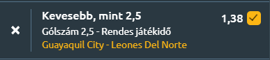 - Nézzünk át Ecuadorba, amely az egyenlítőről kapta a nevét! A középmezőny alján tanyázó Guayaquil City hazai pályán fogadja a sereghajtó Leones del Nortét, és minden statisztika egy visszafogott, kevés gólos mérkőzést vetít előre. A Guayaquil City szezonja eddig döcögős, öt mérkőzésen mindössze egy győzelmet szerzett, miközben támadásban kifejezetten halovány, átlagban 0,4 gólt szerez, és 0,8-at kap. Az utóbbi öt találkozón sem tudott felpörögni, ugyanilyen 0,4-es gólátlag mellett játszik, legutóbb azonban 1–0-ra nyert a Manta ellen. A Leones del Norte még nehezebb helyzetben van, öt meccsen nyeretlen, három döntetlen és két vereség a mérlege, miközben szintén csak 0,4 gólt szerez meccsenként, de 1,4-et kap. Legutóbb 2–0-ra kapott ki az LDU Quitótól. Az egymás elleni mérleg kiegyenlített, az utolsó találkozó 0–0-s döntetlennel zárult, és az öt meccses párharcban is alacsony gólszámok jellemzőek. A tendencia egyértelmű, a Guayaquil City legutóbbi tíz meccséből kilencen, a Leones del Norténél nyolc alkalommal maradt 2,5 gól alatt az eredmény, miközben a gólváltás esélye is alacsony. Minden adat a visszafogott támadójátékot és a kevés helyzetet hozó forgatókönyvet erősíti, így egy lassú tempójú, kevés gólos összecsapás várható, ahol könnyen előfordulhat, egyetlen gól sem esik majd, de mindenképpen 2,5 alatt marad.