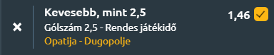 - Mai gólos körképünket Horvátországban kezdjük! Az Opatija–Dugopolje mérkőzés minden statisztikai és játékképi elemzése azt mutatja, hogy ez a találkozó klasszikus UNDER 2.5 meccs, ahol a kevés gól nemcsak valószínű, hanem gyakorlatilag a két csapat DNS-ébe van kódolva. Az Opatija szezonbeli gólátlaga döbbenetesen alacsony, mindössze 0.61 lőtt gól meccsenként, miközben 1.3-at kapnak, ez a kombináció szinte garantálja a lassú, óvatos, kevés helyzetet hozó mérkőzéseket. A Dugopolje sem sokkal termékenyebb, 1.04 lőtt és 0.91 kapott gól átlaggal dolgoznak, vagyis ők is a stabil védekezésre és a minimális kockázatvállalásra építenek. A legutóbbi formájuk is ezt támasztja alá, mindkét csapat az elmúlt öt meccsén 0.6 lőtt gólos átlagot produkált, ami extrém alacsony szám, és egyértelműen az under irányába mutat. A legutóbbi egymás elleni találkozójuk is 1–1 lett, és az elmúlt öt egymás elleni meccsből négy maradt 2.5 gól alatt, ami jól jelzi, hogy ez a párosítás rendszerint feszes, taktikus, kevés helyzetes csatát hoz. Mindezek alapján az UNDER 2.5 nemcsak logikus választás, hanem statisztikailag is erősen alátámasztott, nagyon erős esély!