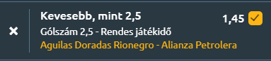 - Kolumbiában járunk, mégpedig az első ligában, ahol az Águilas–Alianza Petrolera mérkőzés minden előjele alapján egy olyan találkozó lesz, ahol a kevés gól szinte törvényszerű, és a statisztikai háttér is egyértelműen ebbe az irányba mutat. Mindkét csapat idei szezonja arról szól, hogy nehezen jutnak el helyzetekig, és még nehezebben váltják gólra azokat: az Águilas az utóbbi öt meccsén mindössze 0.6 gólt szerzett átlagban, míg az Alianza még ezt is alulmúlja a maga 0.8-as mutatójával. A kolumbiai Liga BetPlay eleve híres a taktikus, kevés gólos mérkőzésekről, és ez a párosítás tökéletesen illeszkedik ebbe a profilba. Az Águilas ugyan otthon játszik, de a legutóbbi két hazai meccsét elveszítette, ami óvatosságra kényszeríti őket, míg az Alianza idegenben továbbra is rendkívül gyenge: hat idegenbeli meccsükből csak kettőn találtak be, és még egyetlen idegenbeli győzelmük sincs. Ez a fajta támadóerő hiány és a vendégek lassú, bizonytalan meccskezdeti mintázata, négy idegenbeli meccs óta mindig hátrányban vannak a szünetben, szinte garantálja, hogy nem vállalnak felesleges kockázatot. Az utolsó találkozójuk 1–0 lett, és az elmúlt tíz mérkőzésükből hét maradt 2.5 gól alatt, ami nagyon erős underes tendencia. A jelenlegi formák, a gólátlagok, az Alianza idegenbeli impotenciája és az Águilas második félidős ébredése együtt egy olyan mérkőzést vetítenek előre, ahol a türelem, a szervezettség és a minimális hibázás lesz a kulcs, nem pedig a nyílt támadófutball. Nem várható 2,5 gólnál több a meccsen!