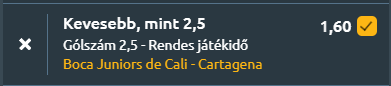 - Még mindig Kolumbiában járunk, de ez már a második liga, ahol a Boca Juniors de Cali és a Real Cartagena összecsapása egyértelműen azok közé a mérkőzések közé tartozik, ahol a kevés gól valószínűsége kiemelkedően magas, és ezt nemcsak a statisztikai mutatók, hanem a két csapat idei játékképe is alátámasztja. A Boca Juniors de Cali szezonbeli teljesítménye rendkívül hullámzó, és bár legutóbb egy gólgazdag 3–3-at játszottak, ez inkább kivétel, mint tendencia: az egész idényben mindössze 1.09 gólt szereznek átlagban, miközben 1.45-öt kapnak, ami egy tipikus, alacsony intenzitású, kevés helyzetet hozó csapatprofil. A Real Cartagena ezzel szemben stabilabb, de nem kifejezetten támadóorientált együttes: 1.73 lőtt és 0.82 kapott gól meccsenként, ami azt jelzi, hogy elsősorban a szervezettségre és a kontrollra építenek, nem pedig a nyílt játékra. A két csapat közös története is alátámasztja a visszafogott meccsképet: az utolsó egymás elleni találkozójuk 0–0 lett, és az elmúlt öt egymás elleniből három döntetlen, kettő pedig Cartagena‑siker, jellemzően szűk eredményekkel. A tabellán elfoglalt helyezések is óvatosságot sugallnak, a Boca a 13. helyen küszködik, míg a Cartagena a dobogó közelében nem engedheti meg magának a felesleges kockázatot. Mindezek alapján ez a találkozó nagy valószínűséggel taktikus, feszes, kevés gólos mérkőzés lesz, ahol az UNDER 2.5 beválási esélye kifejezetten magas.