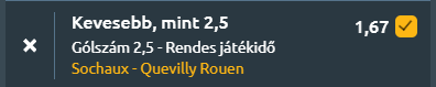 - A francia harmadosztály híres arról, hogy a csapatok elsősorban stabilitásra, szervezettségre és minimális kockázatvállalásra építenek, és ez a párosítás tökéletesen illeszkedik ebbe a mintázatba! Kifejezetten ritka vendég a gól a két csapat meccsein! A Sochaux ugyan a tabella második helyén áll, de sikerességük alapja a fegyelmezett védekezés! Mindössze 0.71 gólt kapnak meccsenként, és az utóbbi öt találkozójukon is csak 0.8-as kapottgól‑átlagot hoztak. A Quevilly Rouen ezzel szemben a kiesőzóna közelében vergődik, és támadásban rendkívül limitált, szezonátlaguk 0.92 lőtt gól, ami egyértelműen az under irányába tolja a mérkőzést. A két csapat közös története is ezt erősíti: az utolsó egymás elleni meccsük 1–1 lett. A Sochaux a feljutásért küzd, így nem fog felesleges kockázatot vállalni, míg a Quevilly Rouen számára minden pont életbevágó, ami szintén a zárt, taktikus játék irányába mutat. Mindezek alapján ez a találkozó nagy valószínűséggel kevés gólt hoz, várhatóan egy gól is eldöntheti a meccset, amit a hazaiak lőnek.