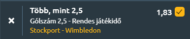 - Mai gólos körutazásunkat egy-az egyben Angliában töltjük el! Az első meccsen az Edgeley Park-ban a Stockport County az AFC Wimbledont fogadja a League One-ban. A Stockport az utóbbi időben vegyes eredményeket hozott, 2-1-es győzelmet arattak Northampton Town ellen, majd 1-1-re végeztek Lutonnal Oliver Norwood szép szabadrúgás góljának köszönhetően. A gárda a tabella 5. helyén áll, két mérkőzéssel több játszottak, és korábban háromszor nyertek az elmúlt négy Wimbledon-ellenes összecsapásukból. Hazai pályán a kilencedik legjobb mutatóval rendelkeznek (10 győzelem, 4 döntetlen, 4 vereség), míg a Wimbledon 14. helyen áll, az utóbbi négy idegenbeli meccsükön nyeretlenek. Mindkét csapatnál az év eleje óta tíz mérkőzésen esett 2,5 gólnál több, így a meccs akár látványos is lehet! Over 2,5 gól valószínű, mert mindkét csapatnál gyakoriak a magas gólszámú meccsek, de Stockport dominanciája és Wimbledon gyenge idegenbeli formája miatt a hazai győzelem is komoly esély!