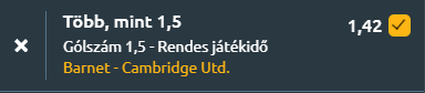 - Szintén a Liga kettőben a Barnet otthon fogadja a Cambridge csapatát. A Barnet az utolsó öt meccsén átlagosan 1,2 gólt szerzett és 1,2-t kapott, míg a Cambridge United átlagosan 1,6 gólt rúgott és csak 0,4-et kapott ugyanebben az időszakban. A szezonban a Barnet meccsenként 1,26 gólt szerzett, a Cambridge pedig 1,47-et, ami mutatja, hogy mindkét csapat képes betalálni. A legutóbbi találkozásaikon 1-3 és 1-0 eredmények születtek, de összességében a gólátlagok alapján jó esély van arra, hogy legalább két gól szülessen a meccsen.