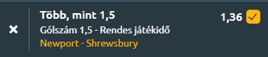 - Izgalmas összecsapásra készülhetünk a Rodney Parade stadionban, ahol a League Two alsóházi küzdelmében a Newport County fogadja a Shrewsbury Townt. A hazaiak a tabella 22. helyén állnak, 1 gólos meccsenkénti átlaggal és 1,72 kapott góllal, míg a vendégek a 19. pozícióban 0,95 gólt szereznek átlagban és 1,62-t kapnak. Az utolsó 5 találkozón Newport 1,4-et, Shrewsbury 0,8-at lőtt meccsenként, miközben mindkét csapat több gólt is kapott. Az egymás elleni korábbi mérkőzésekből is látszik, hogy az összecsapások ritkán maradtak teljesen gólmentesek! Összességében a statisztikák és az előző szezonbeli eredmények egyértelműen az over 1,5 gól mellett szólnak, ami 1,36-os szorzóval kifejezetten értékes, biztonságos kiegészítő tipp lehet a mai napra!