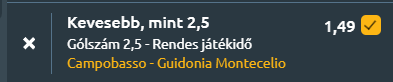 - Szintén Olaszország és a harmadosztály C-jelű ligája, ahol kiegyensúlyozott összecsapás várható Campobasso és Guidonia Montecelio között. Mindkét csapat pontszerzéssel szeretné erősíteni pozícióját a bajnokságban. Nézzük a beszélő számokat! A Campobasso az utóbbi időszakban magabiztosan szerepelt, legutóbb 2-0-ra győzte le a Forlìt, az utolsó öt mérkőzésén 4 győzelem és 1 vereség a mérleg, 1,8 gólt szerezve és 0,8-at kapva átlagosan. A szezonban 14 győzelem, 9 vereség és 8 döntetlen a mérleg, 1,39 gólt szerezve és 1,13-at kapva meccsenként, a tabellán a 4. helyen áll. A Guidonia Montecelio 1937 FC legutóbb 0-0-s döntetlent játszott a Vis Pesaróval, az utolsó öt találkozójukon 1 győzelem, 3 vereség és 1 döntetlen a mérleg, 0,4 gólt szerezve és 0,8-at kapva átlagosan. A szezonban 8 győzelem, 11 vereség és 12 döntetlen szerepel, 0,81 gólt szerezve és 0,9-et kapva meccsenként, a tabellán a 12. helyen áll. Az utolsó három egymás elleni mérkőzésükön a Campobasso 1 győzelmet, a Guidonia 1 győzelmet és 1 döntetlent jegyzett, mindkét csapat 1,3 gólt átlagolt. A statisztikák és az utóbbi formák alapján a mérkőzés várhatóan alacsony gólszámú lesz. Campobasso és Guidonia Montecelio 1937 FC védelme stabil, az utóbbi öt meccs gólarányai 0,8 és 0,8 kapott góllal szintén az Under 2,5-öt erősítik.