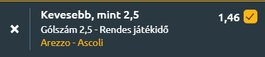 - Olaszországban folytatjuk, ahol a Serie C 34. fordulójában sorsdöntő rangadó következik, az éllovas Arezzo hazai pályán fogadja a közvetlen üldöző Ascolit, és az összecsapás akár a bajnoki cím sorsát is eldöntheti. Az Arezzo kiemelkedő szezont fut, 21 győzelemmel, 7 döntetlennel és mindössze 3 vereséggel vezeti a tabellát, ráadásul az utolsó 27 bajnokijából 25-ön veretlen maradt. Támadójátékuk megbízható, meccsenként átlagosan 1,7 gólt szereznek, miközben a védelem stabilan zár, mindössze 0,7 gólt engedélyezve ellenfeleiknek. Legutóbb magabiztos, 4–0-s sikert arattak idegenben, ami jól mutatja egyensúlyukat támadásban és védekezésben is. Az utóbbi öt mérkőzésükön kiegyensúlyozott teljesítményt nyújtottak, és hazai pályán különösen hatékonyak, legutóbbi 12 otthoni meccsükön mindig betaláltak. Az Ascoli kiváló formában érkezik, zsinórban öt győzelmet aratott, legutóbb idegenben nyert 3–1-re, és ezzel tovább erősítette pozícióját az élmezőnyben. Ez idő alatt meccsenként 2,4 gólt szerzett, miközben mindössze 0,4-et kapott, ami egyértelműen mutatja a csapat támadóerejét és fegyelmezett védekezését. A teljes szezonban is stabil mérleget hoznak. Minden adott egy feszült, taktikus mérkőzéshez, ahol a védekezés kulcsszerepet játszhat. Mindkét csapat egész szezonban stabil védelmére épített, az Arezzo ráadásul gyakran óvatosan kezdi a meccseit, míg az Ascoli is fegyelmezetten kontrollálja az első félidőket. A számok is ezt erősítik, az alacsony kapott gólátlagok és a visszafogott első játékrészek alapján könnyen elképzelhető, hogy szoros, kevés gólos összecsapás várható, ahol reális forgatókönyv a 2,5 gól alatti végeredmény.