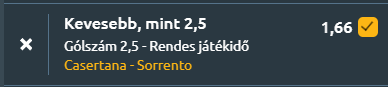 - Még mindig a napfényes Itáliában járunk, ahol a Serie C C-jelű csoportjában a jobb formában lévő Casertana a kiesés elől menekülő Sorrentót fogadja. A Casertana stabil teljesítménnyel bír, jelenleg az ötödik helyen áll, és legutóbb idegenben aratott 2–0-s győzelme is bizonyította, hogy idegenben is hatékony. Az elmúlt öt mérkőzéséből hármat megnyert, egy döntetlent játszott és egyszer kapott ki, miközben átlagosan egy gólt szerzett és egyet kapott meccsenként, ami kiegyensúlyozott játékot tükröz. A szezon során is hasonló képet mutat, 1,4-es rúgott és 1,2-es kapott gólátlag jellemzi. Hazai pályán különösen szervezetten futballozik, kompakt védekezéssel korlátozza ellenfelei lehetőségeit. A párharc történetét tekintve is fölényben van, hiszen az utolsó öt egymás elleni meccsen veretlen maradt, három győzelem és két döntetlen mellett. A Sorrento nehéz helyzetből várja az összecsapást, a 15. helyen áll, és az utóbbi öt meccsén nyeretlen maradt, négy vereség mellett egy döntetlent ért el. Legutóbb ugyan 2–2-es döntetlent játszott, de védekezési problémái továbbra is szembetűnőek, az elmúlt öt találkozón meccsenként 2,4 gólt kapott. A szezon egészét nézve is ingadozó a teljesítménye, 1,1 gólt szerez átlagban, miközben 1,5-öt kap. Idegenben jellemző, hogy a második félidőben nyílnak ki a mérkőzései, de a koncentráció hiánya miatt gyakran nem tudja lezárni a meccseket. A Casertana szervezettsége, valamint a kiegyensúlyozott mutatói alacsony gólszám felé mutatnak. A számok is ezt erősítik, hiszen az átlagos góltermés egyik oldalon sem kiugró, és az esélyek alapján is nagyobb valószínűséggel marad 2,5 gól alatt a mérkőzés.
