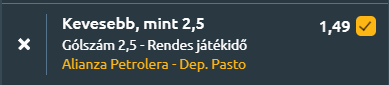 - Ez már Kolumbia, ahol az lsóházi Alianza Petrolera fogadja az élmezőnyhöz tartozó Deportivo Pastót az élvonalban. Az esélyek a hazaiak felé billennek (50%), de a döntetlen is jelentős (28%), miközben a Pasto sem esélytelen. Az Alianza Petrolera legutóbb 1–0-ra kikapott, míg a vendégek 1–2-es vereséget szenvedtek, így egyik csapat sem érkezik győzelemből. Az egymás elleni mérleg kiegyenlített, az utóbbi öt meccsből három döntetlen lett, és mindkét fél 1,2 gólt átlagol. A hazaiak szezonban mindössze 0,54 gólt szereznek meccsenként, miközben 1,54-et kapnak, bár az utóbbi öt találkozón stabilabb védekezést mutattak (0,6 kapott gól). A Pasto támadásban erősebb (1,5 gól/meccs), de idegenben és az utóbbi időszakban is kapja a gólokat. A statisztikák szerint 56% az esélye, hogy legalább az egyik csapat nem talál be, és 60% a valószínűsége a 2,5 gól alatti végkimenetelnek. A számok és a visszafogott hazai támadójáték alapján kevés gólos mérkőzés várható, így az UNDER 2,5 a legindokoltabb választás.