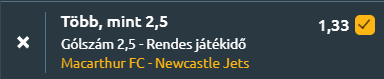 - Átrepülünk Ausztráliába, ahol a Macarthur FC hazai pályán fogadja az éllovas Newcastle United Jets együttesét az A-League mai találkozóján. A hazaiak a hatodik helyről várják az összecsapást, de formájuk ingadozó, az utóbbi öt meccsükből négyet elveszítettek, és csak egyszer nyertek. Védekezésük különösen sebezhető, zsinórban 13 találkozón kaptak gólt, miközben otthon rendre lassan kezdenek, legutóbbi négy hazai meccsükön már a szünetben hátrányban voltak. Támadásban ugyan átlagosan 1,3 gólt hoznak, de 1,6-ot is kapnak, így meccseik gyakran nyíltak, különösen a második félidőben. A Newcastle ezzel szemben vezeti a bajnokságot, idegenben kimagasló, kilenc meccsből nyolcat megnyert és egyet döntetlenre hozott. Formája stabil, az utóbbi öt találkozón három győzelem mellett egy döntetlen és egy vereség a mérlege, miközben védekezése szilárd, átlagosan 0,8 gólt enged. A Jets gyakran már az első félidőben megalapozza a sikert, és a második játékrészben is rendszeresen betalál. A jobb formában lévő és idegenben is magabiztos Newcastle United Jets esélyesebb, egy várhatóan gólgazdag mérkőzésen.