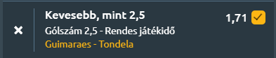 - Még mindig Ibéria, de már egy országgal nyugatabbra vagyunk, A portugál első osztályban a gyenge formát mutató Vitória Guimaraes a kiesés elől menekülő Tondelát fogadja. A hazaiak kilencedik helyen állnak, de 13 pont a hátrányuk az európai helyektől, miközben formájuk visszaesett: az utolsó 10 meccsükből hetet elveszítettek, és az új edző, Gil Lameira irányításával is két vereséggel kezdtek, legutóbb 3-0-ra kaptak ki a Benficától; védekezésük ingatag, több vereségük során legalább két gólt kaptak. A Tondela a kiesőzónában áll, de stabilabb sorozatot fut, hét meccsből csak egyet veszített el, ugyanakkor támadásban gyenge, az utolsó 10 találkozójából haton nem talált be, és összesen csak 19 gólt szerzett a szezonban. A vendégeknél edzőváltás történt, Goncalo Feio első meccsére készül, miközben legutóbb gól nélküli döntetlent játszottak az AVS ellen. Bár idegenben javulást mutattak, a kevés gól és a gyakori döntetlenek mindkét oldalon óvatos játékot vetítenek előre. Alacsony tempójú, kevés gólos mérkőzés várható, az under 2,5 logikus választás.