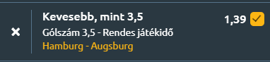 - Még mindig Bismarck hazája a helyszín, de ez már kevésgólos meccs lesz, szintén a Bundesligából. A Hamburg hazai környezetben fogadja az Augsburg gárdáját. A hazaiak a múlt héten 2-0-ra vezettek Dortmund ellen, de végül 3-2-re veszítettek, így az utolsó hat bajnokijukból csak egyet nyertek, és a ligában csak három csapat szerzett kevesebb gólt náluk. Augsburg három vereséggel a háta mögött érkezik, legutóbb Stuttgart 5-2-re verte őket, ezzel véget ért hazai nyolcmeccses veretlenségi sorozatuk, és az idegenbeli teljesítményük is az egyik leggyengébb a ligában. Mindkét csapat gólszegény formában van, mindez az Augsburg gyenge védelmével párosítva alacsony találatszámra utal. Az under 2,5 gól tűnik valószínűnek.