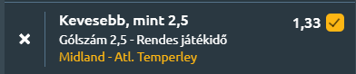 - Még mindig a marhapásztorok országa a cél, de az argentin második liga, talán a leginkább underes bajnokság a Földön! Így hát maradunk, csemegézni. A Midland hazai pályán fogadja a Temperley-t a Primera B Nacional 13. fordulójában. Midland az utóbbi öt meccséből kettőt nyert, egyet elveszített és kettőt döntetlennel zárt, átlagosan 1,0 gólt szerezve és 0,6-ot kapva. Temperley az utóbbi ötből három győzelmet aratott, egyszer vereséget szenvedett és egyszer döntetlent játszott, 0,8 gólt szerezve és 0,4-et kapva, jelenleg a 5. helyen áll. Midland a szezonban 2 győzelmet, 1 vereséget és 2 döntetlent jegyzett, 1,0 gólt szerezve és 0,6-ot kapva, míg Temperley 3 győzelem mellett 1 vereséget és 2 döntetlent ért el, 0,67 gólt szerezve és 0,33-at kapva. Az utóbbi tíz mérkőzésen Midland nyolcszor, Temperley hétszer zárt under 2,5 góllal. A beszélő számok nem hazudnak, ma is underes meccs várható.