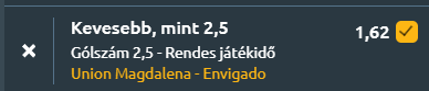 - Egy meccs erejéig elrepülünk dél-Amerikába, ahol a kolumbiai másodosztály a helyszín. A tabella élmezőnyéhez tartozó Unión Magdalena az üldöző Envigadót fogadja, ahol két jó formában lévő csapat csap össze, és a két gárda védekezésorientált meccset fog játszani. Az Unión Magdalena a 3. helyről várja az összecsapást, szezonmérlege 8 győzelem, 2 vereség és 2 döntetlen, miközben meccsenként 1,67 gólt szerez és mindössze 0,83-at kap. Legutóbb magabiztos, 2–0-s győzelmet aratott az Independiente Yumbo ellen. Az utóbbi öt mérkőzésén 3 győzelem, 1 vereség és 1 döntetlen a mérlege, 1,6 rúgott és 0,8 kapott gólos átlaggal, ami stabil, jól szervezett játékot jelez. Az Envigado az 5. helyen áll, és szintén kiegyensúlyozott szezont fut: 7 győzelem, 3 vereség és 2 döntetlen mellett 1,5 gólt szerez és 0,75-öt kap meccsenként. Legutóbb 2–1-re nyert az Atlético ellen, az utolsó öt meccsén pedig 3 győzelem, 1 vereség és 1 döntetlen a mérlege, 2,0 szerzett és 1,0 kapott gólos átlaggal. Az egymás elleni mérlegben az Unión Magdalena felé billen a mérleg: az utolsó öt találkozóból kettőt megnyert, egyet elveszített, kettő döntetlennel zárult, átlagban 1,4 gólt szerez, míg az Envigado 1,0-t. A legutóbbi egymás elleni mérkőzésen hazai pályán 3–1-re nyert az Unión Magdalena. Mindkét csapat képes gólokat is rúgni, de ez a meccs olyan kiegyenlített, hogy óvatos felfogást vetít előre. A statisztikák azonban inkább a visszafogottabb góltermést erősítik, mindkét csapat stabil védekezést mutat a szezon során, alacsony kapott gólátlaggal! Ma sem lesz több, mint 2,5!