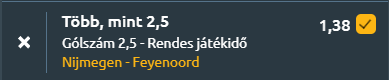- Hollandiába repülünk, ahol gólgazdag mérkőzés várható Nijmegenben, ahol a dobogós NEC a második Feyenoordot fogadja. A találkozó kiemelt tétje a közvetlen Bajnokok Ligája-helyért folytatott verseny, miközben a NEC öt meccse veretlen (4 győzelem, 1 döntetlen), és ebben a sorozatban minden alkalommal legalább két gólt szerzett, ami kifejezetten hatékony támadójátékot jelez. A hazaiak legutóbb 2-0-ra nyertek, emellett a PSV elleni 3-2-es sikerek és a Feyenoord elleni 4-2-es győzelem is azt mutatja, hogy a nagycsapatok ellen is képesek gólpárbajba kényszeríteni az ellenfelet. A rotterdami együttes ugyan négy meccse veretlen, de idegenben mindössze két győzelmet aratott 12 mérkőzésen, és több alkalommal is gólképtelen maradt a közelmúltban. A Feyenoord támadójátéka idegenben hullámzó, három idegenbeli bajnokin nem találtak kapuba, ezért ma fokozottan rohamozni fognak. A NEC hazai pályán jó formában képes gyors ritmust diktálni, miközben a Feyenoord a visszavágás és a pontszerzés kényszerével érkezik. A két csapat korábbi meccsei és a jelenlegi góltermelési mutatók is az élénk, támadófocit vetítik előre. A védekezési ingadozások és a NEC sorozatos gólgazdag mérkőzései együtt erősen a 2,5 gól feletti forgatókönyv felé billentik a mérleget.