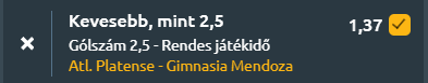 - Alacsony gólszámú, feszült mérkőzés várható a Liga Profesional de Fútbolban, ahol a CA Platense a Gimnasia y Esgrima Mendoza együttesét fogadja. A Platense hét mérkőzés óta nyeretlen, miközben az utolsó négy találkozóján gólt sem szerzett, hazai pályán pedig az elmúlt öt meccsen mindössze egy találatig jutott, ami jól mutatja támadójátékának visszaesését. A csapat szezonbeli mérlege 3 győzelem, 6 döntetlen és 3 vereség, miközben átlagban mindössze 0.5 gólt szerez és 0.6 gólt kap mérkőzésenként, ami kifejezetten zárt meccsképet jelez. A Gimnasia y Esgrima Mendoza ugyan egy 3-2-es sikerrel érkezik, de idegenben továbbra is gyenge, utolsó öt idegenbeli meccsén nyeretlen, és két találkozón gólt sem szerzett. A vendégek szezonbeli átlaga 0.8 szerzett és 1.3 kapott gól, ami szintén alacsony hatékonyságot mutat támadásban. Mindkét csapatnál visszatérő minta a kevés gólos mérkőzés, a Platense utolsó 11 meccse, illetve a Gimnasia idegenbeli találkozóinak többsége is under 2.5 gólt hozott. A két együttes hasonló karaktert képvisel, stabil védekezéssel és korlátozott támadójátékkal, így a mérkőzés képe óvatos, kevés kockázatot vállaló játékot vetít előre. A statisztikák és a formák alapján erősen valószínű a kevés gólos összecsapás, ahol egyetlen találat is döntő lehet.