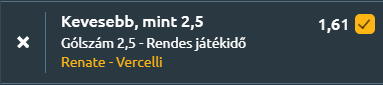 - Az olasz haramdosztályban a Renate hazai pályán fogadja a Pro Vercelli csapatát és a hazaik indulnak nagyobb eséllyel! A Renate az 5. helyen áll, stabil szezonja során meccsenként 1,31 gólt szerez és kevesebb mint egyet kap, míg a Pro Vercelli a 14. helyről érkezik, gyengébb védekezési mutatókkal. A legutóbbi fordulóban a Renate gól nélküli döntetlent játszott, ami jól mutatja a zártabb játékát, míg a Pro Vercelli gólképtelen maradt és 0-2-re kikapott. Az egymás elleni mérleg is inkább a hazaiak felé billen, de a legutóbbi találkozó 1-1-es döntetlennel zárult. Az elmúlt öt egymás elleni meccsen a Pro Vercelli átlagosan csak 0,6 gólt szerzett, ami visszafogott támadójátékra utal. A Renate formája sem kiugró, az utóbbi öt meccsen három döntetlen mellett kiegyensúlyozott, de nem gólgazdag teljesítményt nyújtott. A statisztikák és a közelmúlt eredményei alapján inkább egy kevés gólos mérkőzés körvonalazódik, ahol az under 2,5 tűnik valószínűbbnek.