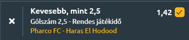 - A körutazás búcsúmeccse Egyiptomból érkezik, ahol a kiesőzóna közelében zajló párharc kevés gólt ígér Pharco és Haras El Hodood között. A Pharco enyhe esélyesként várja az összecsapást 45%-os győzelmi mutatóval, de formája nem meggyőző, az utóbbi öt mérkőzésén nyeretlen maradt, és mindössze 0,4 gólt szerez átlagban. A szezon során is komoly gondjai vannak támadásban, meccsenként csak 0,43 gólt lő, miközben több mint egyet kap. A Haras El Hodood hasonló helyzetben van, a 12. helyen áll, és szintén gyenge támadójáték jellemzi, átlagosan 0,74 gólt szerez, miközben 1,43-at kap. Az utóbbi öt meccsén szintén nem tudott nyerni, és 0,6-os gólátlaga sem ígér sokat. A két csapat egymás elleni mérlege kiegyenlített, de a gólátlag alacsony, mindkét fél egy gól alatt termel átlagosan. Az utóbbi tíz mérkőzésükön is dominálnak az alacsony gólszámú eredmények, különösen a Pharco esetében, ahol tízből kilencszer nem született három gól. A statisztikák egyértelműen kevés gólt várnak!