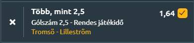 - A gólos körutazásunkat észak-Európában kezdjük. A tabella első felében található csapatok vívnak rangadót Tromsőben. A Tromsö hazai pályán fogadja a Lilleström együttesét, ahol a tabella első és harmadik helyezettje csap össze. A Tromsö hibátlan mérleggel vezeti a bajnokságot, négy győzelemmel, miközben mérkőzésenként 2,5 gólt szerez és alig 0,25-öt kap, legutóbb 2–0-ra nyert a Kristiansund ellen. A Lilleström szintén veretlen, három győzelemmel áll, 2,33-as gólátlaggal, legutóbb 3–1-re múlta felül a Startot. Az egymás elleni mérleg a Tromsö felé billen, az utóbbi öt meccsből hármat megnyert, és idegenben is legyőzte riválisát. Mindkét csapat jó formában van, az utóbbi öt meccsből négyet nyertek, ugyanakkor a Tromsö védekezése stabilabb, míg a Lilleström több gólt enged. A statisztikák alapján ugyan az over 2,5 esélye majdnem 60 %, a norvég bajnokság alapvetően gólgazdag, ez a meccs is az lehet.