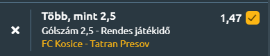 - Ez már Szlovákia, ahol kupacsúcsrangadó lesz Kassán! Az FK Kosice a Tatran Presov ellen lép pályára a Szlovák Kupában, ahol az első és második helyezett találkozik. A kassaiak enyhe esélyesként várják a meccset, és legutóbb 2–1-re nyertek a Komárno ellen, míg a Presov 1–0-ra kikapott a Trencíntől. Az egymás elleni mérleg szoros, de a Kosice felé billen, az utóbbi öt találkozóból kettőt megnyert, és a legutóbbi meccsen is győzött. A szezonban mindkét csapat erős támadójátékot mutat, a Kosice 4,33-as, a Presov 3,83-as gólátlaggal rendelkezik, ez pedig jól mutatja, hogy ma is legalább három gólt láthat a nagyérdemű.