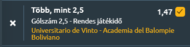 - Utazunk Dél-Amerikába, ahol a mindig gólgazdag bolíviai bajnokság a cél. A bolíviaiak nem olyan jó focisták, de élvezik és nyílt sisakos támadójátékot játszanak! Az Universitario de Vinto és az ABB meccsel a bajnokság mai játéknapján, ahol a számok egyértelműen a hazaiak felé billennek. Mindkét csapat vereséggel érkezik a találkozóra, a Vinto 1-0-ra kapott ki a Nacional Potosí ellen, míg az ABB 2-0-s vereséget szenvedett a Club Bolívar ellen. Az egymás elleni mérleg teljesen kiegyenlített, a két legutóbbi találkozón mindkét fél egyszer győzött, és meccsenként egy-egy gólt szereztek. A tabellán ugyanakkor jelentős a különbség, a Vinto a 16. helyen áll, míg az ABB a hetedik pozíciót foglalja el. A szezon eddigi részében a hazaiak még nyeretlenek, kevés gólt szereznek és több gólt kapnak, míg az ABB kiegyensúlyozottabb mutatókat hoz. A közelmúlt formája kifejezetten gyenge a Vinto részéről, öt egymást követő vereséggel, ráadásul védekezésben széteső képet mutat, hiszen 2,6 gólt kap meccsenként, miközben támadásban is visszafogott. Az ABB gólgazdag mérkőzéseket játszik, közel kétgólos átlaggal, és védekezésben sem stabil. Nyílt támadójáték várható, mindkét csapat védelme sebezhető, az over és a gólváltás esélye is magas.
