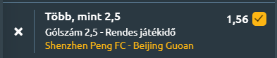 - Utolsó állomásunk a Vörös Sárkány hazája, ahonnan két meccset is hoztam. Elsőként a Shenzhen Peng City és a Beijing Guoan találkozik a kínai Szuperligában, ahol a vendégek enyhe győzelmi eséllyel érkeznek. A Shenzhen legutóbb 2-0-ra kikapott a Chongqing Tonglianglong FC ellen, míg a Beijing Guoan gól nélküli döntetlent játszott a Zhejiang ellen. Az egymás elleni mérleg kiegyenlített, de enyhe Shenzhen-fölényt mutat, az utóbbi öt meccsből hármat megnyertek, egyszer döntetlen született, egyszer pedig a Guoan győzött. A két csapat gólátlaga hasonló, a Shenzhen 1,4-et, a Guoan 1,2-t szerez meccsenként az egymás elleni párharcokban. A bajnokságban a Shenzhen a 6., a Guoan a 13. helyen áll, miközben a hazaiak támadásban aktívabbak, de védekezésük sebezhető, hiszen 2,33 kapott gól az átlaguk. A Guoan gyengébb formában van, kevés gólt szerez, de valamivel stabilabb védekezést mutat. A közelmúlt formája mindkét oldalon felemás, a Shenzhen 1,8-as gólátlag mellett ugyanennyi gólt is kap, míg a Guoan kevésbé hatékony támadásban, de szervezettebb védekezést mutat. A statisztikák alapján nyílt játék várható, ahol a Shenzhen támadóbb felfogása és a Guoan bizonytalan formája gólgazdag találkozót vetíthet előre.
