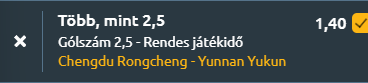 - Még mindig Kína, ahol a Chengdu Rongcheng a Super League élén állva fogadja a Yunnan Yukun együttesét. A Chengdu legutóbb 1-0-ra nyert a Wuhan Three Towns ellen, miközben továbbra is veretlen a bajnokságban, stabil támadójátékkal és meccsenként közel háromgólos átlaggal. A Yunnan Yukun ezzel szemben 0-3-as vereséget szenvedett a Tianjin Jinmen Tiger ellen, és formája hullámzó, védekezése különösen sebezhető, miközben ugyan támadásban képes gólszerzésre, de sok gólt is kap. Az egymás elleni párharcok egyértelmű Chengdu-fölényt mutatnak, mindkét eddigi meccsüket megnyerték, legutóbb 5-1-re idegenben, ahol átlagosan 3 gólt szereztek ellenük. A tabellán is jelentős a különbség, a Chengdu az első helyen áll veretlenül, míg a Yunnan a negyedik pozícióban ingadozó formát mutat. A közelmúlt statisztikái alapján a hazaiak dominálnak, magas góltermeléssel és stabil eredményességgel, míg a vendégek meccsei szintén gólgazdagok, de sok kapott góllal párosulnak. A számok alapján nyílt, támadó szellemű játék várható, ahol a Chengdu fölénye mellett a vendégek is képesek lehetnek helyzeteket kialakítani és gólokat szerezni.