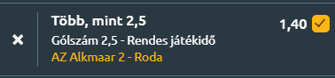 - A második hollandiai állomásunkon az AZ Alkmaar tartalékcsapata és a Roda JC Kerkrade csap össze Alkmaarban, ahol a hazaiak egy nehéz időszak után szeretnék szépen lezárni a szezont, míg a vendégek már biztos résztvevői az osztályozónak. A Jong AZ három vereséggel a háta mögött érkezik és az utóbbi öt meccsük 1,2 rúgott és 2,6 kapott gólos átlagot hozott. A szezonjuk 11 győzelemmel, 4 döntetlennel és 22 vereséggel áll, 1,6-os gólátlaggal elöl és 2,1-gyel hátul. A védekezés különösen otthon gyengélkedik, hiszen az utóbbi 11 hazai meccsből kilencszer már a szünetben hátrányban voltak. Ugyanakkor a találkozóik rendre mozgalmasak, 20 bajnoki óta mindig legalább 1,5 gól esik, tíz meccs óta pedig már az első félidőben is megindul a gólgyártás. A szögletek száma is magas, 21 meccs óta rendre 7,5 fölé kúszik. A Roda JC Kerkrade stabil formában érkezik, 55 ponttal a 8. helyen áll, és az utóbbi öt meccsén két győzelmet, két döntetlent és egy vereséget jegyzett, 1,8-as rúgott és mindössze 1,0-s kapott gólátlaggal. A Willem II elleni 0–1 volt az egyetlen botlásuk, miközben idegenben Eindhovenben 1–3-ra, Dordrechtben 0–3-ra nyertek, és Helmond Sport (1–1), valamint FC Emmen (2–2) ellen is pontot szereztek. A meccseik lendületesek, 20 találkozóból 18-szor már az első félidőben megszületett legalább egy gól, és a szögletek száma náluk is szinte garantáltan 7,5 fölé megy. A legutóbbi egymás elleni meccsük 2–3-mal zárult a Roda javára, ami jól illeszkedik a két csapat támadó felfogásához. A Jong AZ három győzelemmel, egy döntetlennel és egy vereséggel enyhe fölényben van a párharc történetében, és a találkozóik átlagosan 2,8 rúgott és 1,8 kapott gólt hoztak tőlük. Mindkét fél nyílt futballt játszik, a hazaiak a gyorsaságra és az átmenetekre építenek, míg a Roda szervezett, de hatékony támadójátékkal operál. A vendégek formája és motivációja erősebb, így várhatóan ők diktálják majd a tempót, de a Jong AZ otthon rendszeresen gólgazdag meccseket produkál, ez pedig azt jelenti, hogy legalább három gól várható!