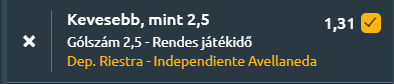 - A gólos körutazásunk utolsó állomása a gaucsók földje, ahol a meccsek zöme mindig kevés gólt hoz. A Deportivo Riestra és az Independiente mérkőzése két teljesen eltérő formában lévő csapat találkozója lesz. A hazaiak a tabella alján vergődnek, míg a vendégek a felsőházban stabilizálnák helyüket. A Riestra öt meccs óta gólképtelen, több mint 450 perce nem talált be, és 14 forduló óta nyeretlen (7 döntetlen, 7 vereség). Támadójátékuk gyakorlatilag nem létezik, a buszt betolják a kapu elé, és mindössze 0,2 gólt szereznek meccsenként, miközben 0,9-et kapnak. A meccseik rendre kevés gólt hoznak, hiszen az utóbbi 23 találkozójuk mind 2,5 gól alatt maradt, és a hazai pályán lejátszott utolsó 12 meccsük is ugyanezt a mintát követte. Egyetlen kapaszkodójuk, hogy 21 hazai meccsből 20-szor nem kerültek hátrányba a szünetre, de a második félidőkben rendre elfogynak. Az Independiente jó formában van, legutóbb 3–1-re verte a Defensa y Justiciát, és az utóbbi négy meccséből hármat megnyert. A szezonban 1,6 gólt szereznek és 1,2-t kapnak átlagban, az utóbbi öt találkozón pedig 2,0 rúgott és 1,2 kapott gólos átlagot hoztak. A támadójátékuk különösen megbízható, hiszen 19 egymást követő meccsen mindig betaláltak. A találkozó képe így szinte adott! A Riestra mélyen védekezik, próbálja túlélni a meccset, míg az Independiente dominál, helyzeteket alakít ki és a jobb formájára támaszkodik. A vendégek minősége végül felülkerekedik, bedarálják a Riestrát, de nem lesz két gólnál több a meccsen!