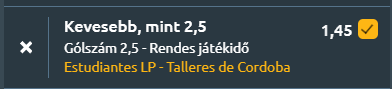 - Meg is érkeztünk Argentínába, ahol talán a legmagasabb az UNDER-ek aránya! Elsőként az élvonalból az Estudiantes de La Plata és a Talleres de Córdoba rangadója következzen, ami a Liga Profesional egyik legkiegyensúlyozottabb összecsapásának ígérkezik, hiszen mindkét csapat remek formában érkezik, stabilan a tabella élmezőnyében. A listavezető Estudiantes a már biztos továbbjutás tudatában lehet, legutóbb az Instituto elleni idegenbeli 0–1-es sikerrel három győzelmet, egy döntetlent és egy vereséget számlál az utóbbi öt meccsén, miközben átlagosan 1,2 gólt szerez és mindössze 0,8-at kap. Hazai pályán ugyan ingadozóbb a teljesítményük három győzelemmel és két vereséggel, és az utóbbi öt otthoni találkozóból csak egyszer hoztak le kapott gól nélkül. Meccseik szinte mindig kevés gólt hoznak: 29 bajnokiból 28-szor Under 3,5, és 12 egymást követő alkalommal Under 1,5 volt a félidő. A ritmus kontrollálása, a fegyelmezett védekezés és a visszafogott első félidők jellemzik őket, miközben a második játékrészben rendre megérkezik legalább egy gól. A negyedik helyen álló Talleres de Córdoba hasonlóan kiegyensúlyozott formát mutat, a Deportivo Riestra elleni 2–0-s győzelem után három győzelem, egy döntetlen és egy vereség szerepel a nevük mellett, 1,2 rúgott és 0,6 kapott gólos átlaggal. A 7–3–4-es szezonmutatójukat különösen erős idegenbeli teljesítmény jellemzi. A védekezésük rendkívül stabil, 37 egymást követő bajnokijukon Under 3,5 született, és 20 meccsből 18-szor Under 1,5 volt a félidő. Idegenben tíz egymást követő alkalommal hozták 1,5 gól alatt a szünetet, és 30 idegenbeli találkozóból 28-szor legalább az egyik csapat nem talált be a félidőig. Bár az utóbbi négy meccsből háromszor kaptak gólt, összességében továbbra is rendkívül szervezett, kompakt csapat benyomását keltik. A két együttes párharcai hagyományosan szorosak, az Estudiantes 3–0–2-es mérlege és a 0,6-os gólátlag mindkét oldalon a defenzív csatákra utal. A legutóbbi találkozó 1–0-ra végződött, ami tökéletesen illeszkedik a két csapat óvatos, fegyelmezett játékához. A statisztikák alapján most is kevés gól várható, a hazai pálya előnye az Estudiantest segítheti, de a Talleres idegenbeli stabilitása miatt a mérkőzés továbbra is kiegyenlített marad.