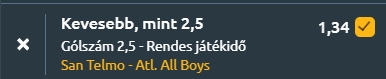 - Még mindig Argentína, de már a másodosztály, ahol a San Telmo és az All Boys összecsapása kiegyenlített erőviszonyokat ígér. Lássuk is a számokat! Mindkét csapat 0–0-s döntetlenből érkezik, a San Telmo a Los Andes, az All Boys pedig az Acassuso ellen maradt gólképtelen. A közelmúltbeli egymás elleni mérleg egyértelműen a vendégek felé billen, az utóbbi öt találkozóból hármat az All Boys nyert meg, kettő döntetlen lett, és a San Telmo egyszer sem tudott győzni, miközben átlagosan csak 0,4 gólt szerzett, szemben az All Boys 1,4-es átlagával. A tabellán is közel állnak egymáshoz, a San Telmo a 15., az All Boys a 13. helyen áll. A hazaiak szezonbeli mérlege 2 győzelem, 4 vereség és 3 döntetlen, 1,11 rúgott és 1,44 kapott gólos átlaggal, míg az All Boys 2 győzelemmel, 3 vereséggel és 4 döntetlennel, mindössze 0,44 szerzett és 0,67 kapott gólos mutatóval rendelkezik. A formák alapján a San Telmo az utóbbi öt meccsén két győzelmet, két vereséget és egy döntetlent ért el, 1–1-es gólátlaggal, míg az All Boys öt találkozó óta nyeretlen, két vereséggel és három döntetlennel, és döbbenetes módon egyetlen gólt sem szerzett, miközben csak 0,6-os kapottgól-átlagot produkált. Az All Boys öt meccs alatt egyetlen gólt sem szerzett, és a szezonbeli gólátlaga is rendkívül alacsony (0,44), és a San Telmo sem termel sok gólt! A statisztikai valószínűség egyértelmű, az Under 2,5 esélye magas!