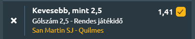 - Szintén a foci VB-k királyainak hazájában maradunk, ahol a San Martín San Juan és a Quilmes Atlético Club találkozóján fognak kiegyenlített helyzetben küzdeni a felek. Nézzük a beszélő számokat! A San Martín friss idegenbeli 0–1-es sikerrel érkezik a Midland ellen, míg a Quilmes 0–0-ra végzett a Nueva Chicago ellen. Az egymás elleni mérleg az utóbbi öt meccsen a San Martín felé billen három győzelemmel és két vereséggel, és legutóbb idegenben is 0–1-re nyertek. A gólátlagok visszafogottak, a San Martín 0,8-at, a Quilmes 1,0-t szerzett átlagosan ezekben a párharcokban. A tabellán is közel állnak egymáshoz, a San Martín a 11., a Quilmes a 9. helyen áll. A hazaiak szezonbeli mérlege 2 győzelem, 3 vereség és 4 döntetlen, 0,89 rúgott és 1 kapott gólos átlaggal, míg a vendégek 3–3–3-as mutatóval, 1,22 szerzett és 0,78 kapott góllal rendelkeznek. A formák alapján a San Martín az utóbbi öt meccsén egy győzelmet, egy vereséget és három döntetlent ért el, 0,8–0,8-as gólátlaggal, míg a Quilmes két győzelemmel, egy vereséggel és két döntetlennel érkezik, 1,6 rúgott és 1 kapott góllal meccsenként. Mindkét csapat visszafogott góltermeléssel dolgozik, a San Martín 0,89-es, a Quilmes 1,22-es gólátlaga mellett a statisztikai valószínűség is egyértelmű, az Under 2,5 esélye 74%!