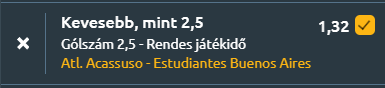 - Az Acassuso és az Estudiantes de Buenos Aires találkozója óvatos, kevés gólos mérkőzést vetít előre az Estadio La Quemában. A hazaiak 12. helyen állnak, és pocsék formában érkeznek, az utóbbi öt meccsükből négyet elveszítettek, egyszer döntetlent játszottak, miközben egyetlen gólt sem szereztek, viszont 1,4-es kapott gólátlagot hoztak. A legutóbbi fellépésük 0–3-as vereség volt a Gimnasia La Plata ellen. A szezonban is mindössze 0,89 gólt lőnek és 1,11-et kapnak átlagban, ami jól mutatja támadójátékuk gyengeségét. Az Estudiantes Buenos Aires a 14. helyről várja a fordulót, és jobb formát mutat: az utóbbi öt meccsükből hármat megnyertek, egyszer döntetlent játszottak, egyszer kikaptak, 1,0 lőtt és 0,6 kapott gólos átlaggal. Legutóbb 0–0-ra végeztek a Chaco For Ever ellen. A szezonban 0,56 gólt szereznek és 0,89-et kapnak meccsenként, vagyis ők sem a gólzáporos futballról híresek. A statisztikák egyértelműen a kevés gólos forgatókönyvet támogatják. Mindkét csapat tíz legutóbbi meccséből hét alkalommal 2,5 gól alatt maradtak, így ma is jó esély van erre az eredményre!