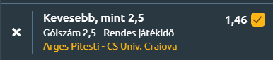 - Ez pedig már kelet-közép Európa, ahol inkább a gólszegény meccsek a jellemzőbbek. A román bajnokság felsőházában az Arges gárdája látja vendégül a craiovai egyetemistákat. A két csapat legutóbbi mérkőzései visszafogott támadójátékot mutatnak, az Arges 1–1-re végzett az Universitatea Cluj ellen, míg a Craiova 0–0-s döntetlent játszott a Dinamo Bucuresti csapatával. Az egymás elleni mérleg szoros, hiszen az utóbbi öt találkozóból hármat a Craiova nyert, kettőt az Arges, döntetlen pedig nem született. A gólátlagok is mérsékeltek, Argeş 1,0, a Craiova 1,4 gólt szerzett meccsenként. A tabellán a Craiova a 3., Arges pedig az 5. helyen áll. A szezonstatisztikák alapján a hazaiak 16 győzelemmel, 12 vereséggel és 7 döntetlennel 1,11-es gólátlagot és 0,89-es kapottgól-átlagot hoznak, míg a Craiova 20 győzelemmel, 6 vereséggel és 9 döntetlennel 1,63 lőtt és 0,91 kapott gólt átlagol. A formamutató szerint Arges öt meccs óta nyeretlen, mindössze 0,4 gólt szerez meccsenként, miközben 0,8-at kap. A Craiova ezzel szemben három győzelemmel, egy vereséggel és egy döntetlennel érkezik, 0,8-as gólátlaggal és ugyanennyi kapott góllal. A gólpiacra vonatkozó számok egyértelműen óvatos, kevés gólos mérkőzést vetítenek előre, a Craiova tízből hétszer maradt 2,5 gól alatt, mindez pedig mára is esélyessé teszi az UNDER-t!