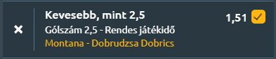 - Még mindig a Fekete Tenger partján járunk, csak most Bulgáriában, ahol a Montana és a Dobrudzsa 1919 csapatai inkább vendég felé billenő erőviszonyok mellett vágnak neki a mérkőzésnek. Lássuk a statisztikát! A legutóbbi fordulóban Montana 0–0-ra végzett a Slavia Szófiával, míg a Dobrudzsa 1919 3–0-s vereséget szenvedett a Botev Plovdiv ellen. Az egymás elleni mérleg szoros, az utóbbi öt találkozóból kettőt Montana nyert, egyet a Dobrudzsa, kétszer pedig döntetlen született. A gólátlagok alacsonyak, a Montana 0,8, a Dobrudzsa 0,4 gólt szerzett meccsenként. A tabellán a Dobrudzsa 1919 az 5., Montana pedig a 8. helyen áll. A szezonstatisztikák alapján Montana 3 győzelemmel, 19 vereséggel és 8 döntetlennel 0,5 gólt lő és 1,5-öt kap átlagban, míg a Dobrudzsa 7 győzelemmel, 18 vereséggel és 5 döntetlennel 0,77-es gólátlagot és 1,43-as kapottgól-átlagot hoz. A formamutató mindkét oldalon gyenge! A Montana öt meccs óta nyeretlen, 0,2-es gólátlaggal és 1 kapott góllal, míg a Dobrudzsa szintén nyeretlen, 0,4-es gólátlaggal és 2 kapott góllal. Összesítve tehát látható, hogy mindkét csapat rendkívül alacsony gólátlaggal játszik, a formájuk gyenge, és a statisztika szinte minden ponton a kevés gólos mérkőzés irányába mutat!