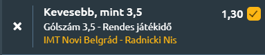 - Még mindig a csevapcsicsa otthonában vagyunk, ahol az IMT Novi Beograd és a Radnicki Nis találkozik, és kiegyenlített erőviszonyok mellett vágnak neki a mérkőzésnek. Lássuk meg a számokat! A legutóbbi fordulóban az IMT Novi Beograd idegenben 1–0-ra verte a Napredakot, míg a Radnicki egy gólgazdag 3–2-es sikerrel hangolt a Javor Ivanjica ellen. Az egymás elleni mérleg is szoros, az utóbbi öt találkozóból kettőt-kettőt nyertek, egy döntetlen mellett, miközben a Novi Beograd 1,2-es, a Radnicki pedig 1,4-es gólátlagot hozott. A tabellán a Radnicki a 2., az IMT Novi Beograd pedig a 3. helyen áll, de a szezonstatisztikák alapján mindkét csapat visszafogott támadójátékot mutat, a hazaiak 1,16-os gólátlaggal és 1,56 kapott góllal, a vendégek pedig 1,25 lőtt és 1,41 kapott góllal dolgoznak. A formamutató szerint az IMT Novi Beograd stabilabb, hiszen az utóbbi öt meccsén veretlen maradt két győzelemmel és három döntetlennel, átlagban 1,6 gólt szerezve és 1-et kapva. A Radnicki ezzel szemben gyenge formában van, egy győzelem mellett három vereség és egy döntetlen szerepel, 1,4-es gólátlaggal és 2 kapott góllal. Összességében egy visszafogott, kevés gólos találkozóra van kilátás, nem több, mint két találattal.