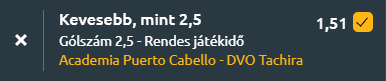 - A venezuelai élvonal egyik rangadójára kerül sor, amikor az éllovas Academia Puerto Cabello hazai pályán fogadja a tabella harmadik helyén álló Deportivo Táchira együttesét. Az Academia Puerto Cabello az aktuális idényben kiegyensúlyozottan teljesít, és jelenleg a Primera División első helyén áll. A csapat 6 győzelmet, 4 vereséget és 3 döntetlent jegyez, miközben mérkőzésenként átlagosan 1,08 gólt szerez és csak 0,77-et kap, ami a bajnokság egyik legjobb védekezésére utal. Legutóbbi találkozóján 2–1-re győzte le a Portuguesa csapatát, ami lendületet adhat a mostani rangadóra. Az elmúlt 5 meccsen ugyan háromszor kikapott, de emellett kétszer nyert, és átlagosan 1 gólt lőtt, míg 1,2-t kapott. A Deportivo Táchira szintén jól szerepel az idényben, a harmadik helyen tanyázik, és valamivel stabilabb formát mutat az összképet nézve: 6 győzelem, mindössze 2 vereség és 5 döntetlen szerepel a nevük mellett. A gólátlaguk támadásban jobb, mint az ellenfélé: 1,46 rúgott, míg ugyancsak csak 0,77 kapott gól mérkőzésenként, vagyis szintén kiválóan zárnak hátul. Az utóbbi 5 meccsükön viszont meglehetősen visszafogottan szerepeltek, mindössze egyszer nyertek, háromszor kikaptak, és egy döntetlent játszottak – legutóbb 0–0-t a Carabobo ellen. Ez a formahanyatlás óvatosságra intheti őket, de a statisztikák szerint még mindig veszélyes ellenfélnek számítanak, különösen idegenben. Érdekesség, hogy a két csapat gólátlaga az egymás elleni meccseken megegyezik: 1,0 gól/mérkőzés mindkét oldalon. A statisztikák alapján rendkívül kiegyenlített mérkőzés várható, a két, jó védekezéssel bíró csapat inkább taktikai és kevés gólt hozó csatát vív majd.