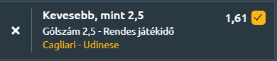 - A Serie A 35. fordulójában a Cagliari és az Udinese találkozik Szardínia szigetén. A tabella középső harmadában helyet foglaló két csapat célja a biztos bennmaradás és a bajnokság pozitív zárása. A hazai Cagliari legutóbb idegenben tudott nyerni a Hellas Verona ellen (0–2), ami önbizalmat adhat számukra a soron következő hazai fellépés előtt. A csapat jelenleg a 14. helyet foglalja el a Serie A-ban, 8 győzelemmel, 9 döntetlennel és 17 vereséggel. A szezon során átlagosan 1.03 gólt szereztek és 1.44-et kaptak meccsenként, ami arra utal, hogy a támadójátékuk visszafogott! Az utóbbi 5 mérkőzésükön azonban javuló formát mutatnak, két győzelem, egy döntetlen és két vereség, 1.4-es gólátlag mellett, miközben csak 1.0 gólt kaptak meccsenként – tehát láthatóan stabilak hátul, jól védekeznek. Az Udinese jelenleg két hellyel a Cagliari előtt, a 12. pozícióban áll. A csapat legutóbbi fellépésén gól nélküli döntetlent játszott a Bologna ellen, de az összkép aggasztóbb, az elmúlt öt meccsükön négy vereség és egy döntetlen a mérleg, miközben csak 0.2 gólt szereztek átlagosan és 1.8-at kaptak. A szezon egészét nézve 11 győzelem, 8 döntetlen és 15 vereség szerepel a nevük mellett, 1.06-os szerzett és 1.41-es kapott gólátlaggal. A két csapat formáját és statisztikáit vizsgálva egy kiegyenlített, de óvatos találkozóra van kilátás. Az Udinese támadójátéka az utóbbi időben gyakorlatilag megszűnt, míg a Cagliari csak minimális javulást mutatott, így egy szoros, kevés helyzetet hozó mérkőzés várható, ahol akár egyetlen gól is dönthet.
