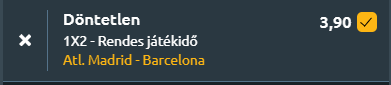 - Döntetlen: Végső soron az eddigi eredményektől kezdve a jelenlegi formáig szinte minden a Barcelona mellett szól. Ám az Atlético egyike azon kevés spanyol csapatnak, amelyek – mind egyénileg, mind taktikailag – képesek felvenni a versenyt a katalánokkal, pláne a zsúfolásig telt Metropolitanóban, ahol a mostani szezonban elvérzett már például a Real Madrid (5-2) és a tavalyi BL-döntős Inter (2-1) is. És azt sem szabad elfelejteni, hogy lesz még egy visszavágó, Katalóniában, a Camp Nouban. A Matracosokat különösen nehéz legyűrni hazai pályán, rendkívül kompakt a védekezésük, Hansi Flick, a gránátvörös-kékek edzője aligha dőlne a kardjába, ha csapata – amelynek támadósorából kulcsemberek hiányoznak – „csak” egy döntetlent érne el itt. És az előzmények ismeretében – a Barca újabban győzni járt hozzájuk – talán kollégája, Diego Simeone sem szomorkodna egy ilyen eredmény miatt. Az iksz tehát mindkét csapat számára elfogadható kiindulópontot biztosítana a párharc második, mindent eldöntő felvonására.
