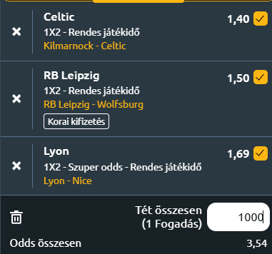 A Celtic Glasgow aranyérmes reményeit alapozná meg, az RB Leipzig és az Olympique Lyon pedig Bajnokok Ligája-szereplést érő pozícióját óvná. Szépet kaszálhatunk vasárnap ezekkel az ambíciózus topcsapatokkal.