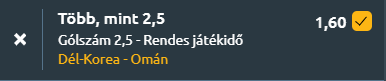 - Dél-Korea magabiztosan várhatja az Omán elleni világbajnoki selejtezőt, hiszen remek formában vannak, kilenc mérkőzés óta veretlenek, ebből hetet megnyertek, ráadásul hazai pályán különösen erősek, hiszen a Goyang Stadionban tíz meccs óta nem kaptak ki. A támadóerejük jelentős, az előző nyolc meccsükből csak kettőn nem szereztek legalább két gólt, miközben ötször is megőrizték kapujukat a góltól. Omán ezzel szemben hajlamos védekezési hibákra, hiszen az elmúlt nyolc tétmeccsükből mindössze egyet tudtak kapott gól nélkül lehozni, és az utóbbi hat találkozójukon mindig betalált nekik az ellenfél. Bár az elmúlt hét meccsükből csak egyet veszítettek el, idegenben nem teljesítenek jól, hiszen legutóbbi négy vendégszereplésükön nyeretlenek maradtak. A dél-koreai támadósor formája és Omán védekezési problémái miatt várhatóan a hazai csapat dominálja majd a találkozót, és akár többgólos győzelmet is arathat. Minimum három gól várható a meccsen.