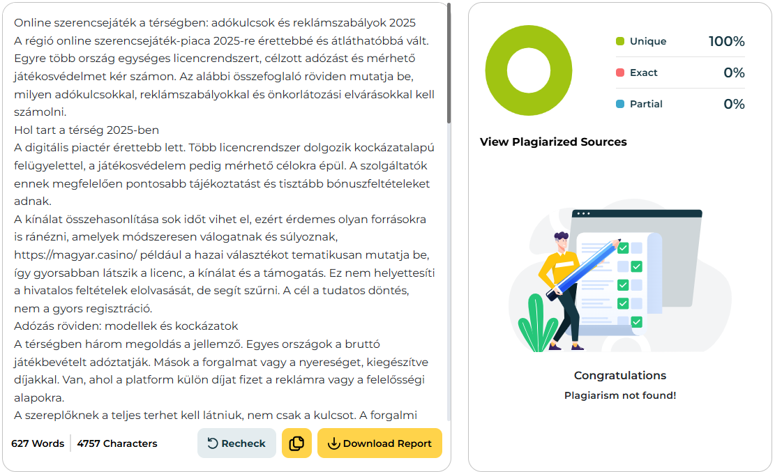 A térség online szerencsejátéka komolyodik. A szabályozás nem csak korlátoz, hanem keretet ad a tiszta működéshez. Aki pontos adó- és reklámtervvel dolgozik, és mérhető játékosvédelmet épít, kevésbé ütközik falakba. Így marad idő a lényegre: biztonságos, érthető és fenntartható szolgáltatás.