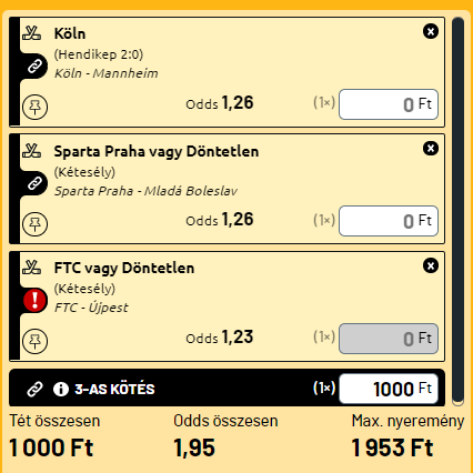 Egy hárommeccses szelvényt hoztam január 2-ra.