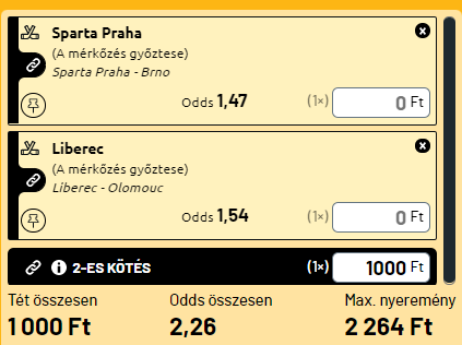- Két klasszikus cseh rangadó, két erős hazai esély. A Sparta Praha félelmetes játékot produkált, amikor a Mlada Bolseslavnak hintett egy hetest nulla ellenében. A Brno sem ússza meg a vereséget. A másik meccsen pedig a Liverec a legutóbbi Litvinov elleni vereséget fogja ma kozmetikázni, a 11. helyen álló Olomuc ellen. Itt is hazai meccsgyőzelmet várok a rendes játékidőben.