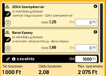 Ma két orosz vendéggyőzelmet hoztam a KHL-ből. Az egyik a liga egyik legerősebb csapata, az SZKA Szentpétervár, amely a keleti 11. Vlagyivosztok ellen lép föl, idegenben. A másik pedig a keleten 10. Jekatyeringburg, öt vereség után, rossz formában fogadja a győzelemmel a zsebben érkező, keleti 3. Barsz Kazanyt. Itt is vendég-meccsgyőzelem várható.