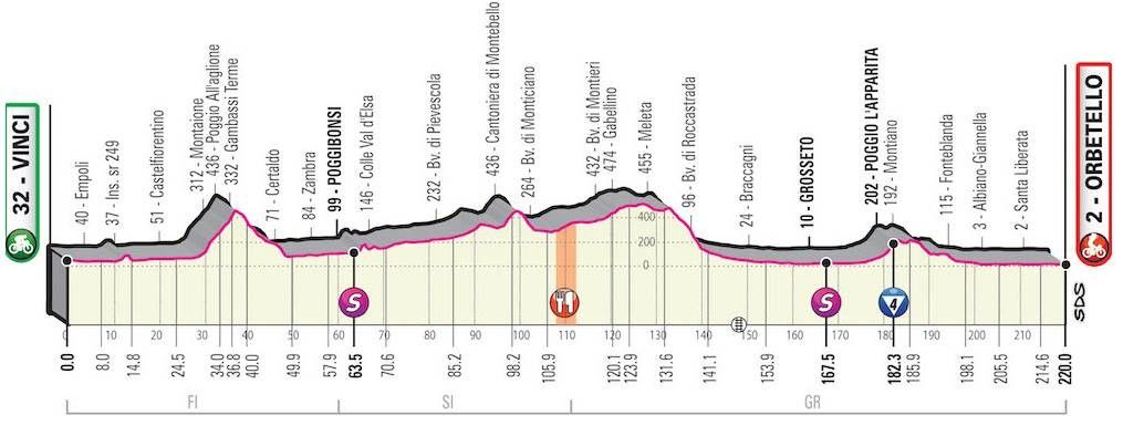 - A Giro első hetének a lényege az, hogy a hosszú szakaszokkal kifárasszák a versenyzőket, mielőtt eljutnak a 13. szakaszig, az első hegyi etapig, addig az összetettben esélyek kellően kizsigerelve érkezzenek el a hegyek lábához. A mai is egy ilyen lesz. Viszonylag nagy átlagsebesség várható, a végén sprintbefutóval. Ráadásul esni os fog és mintegy 37 km/h-s északkeleti szél is várható. A tegnapi menet előtt esélyesnek ítélt gyorslábúak, úgy mint Viviani, Gaviria, Caleb Ewan mellé nagy esélyesként csatlakozik Pascal Ackermann is. Az összetettben esélyesek megjönnek a mezőnnyel, a szökést pedig be fogják darálni!