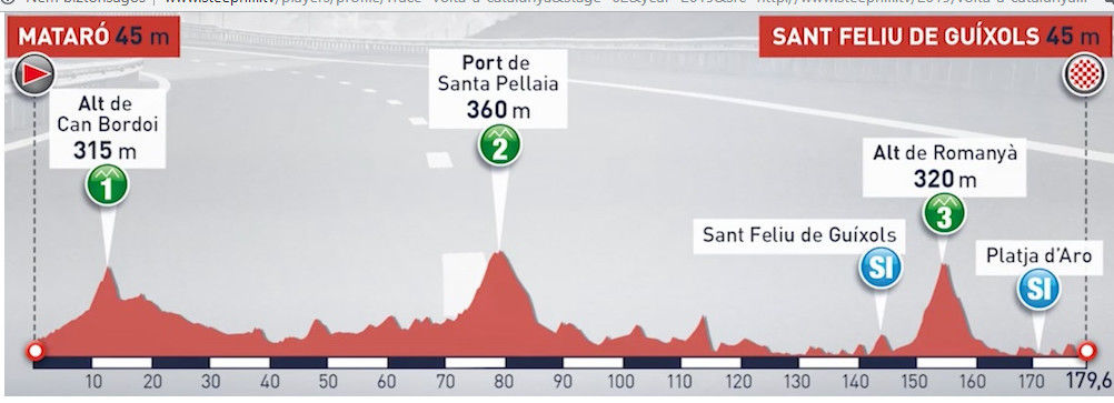 A második szakasz nehézsége talán egy fokkal kisebb, mint a nyitószakaszé. Három emelkedő van az útvonalban, mindhárom 300 méter körüli magasságú, de a meredekséget tekintve egy 1-es, egy 2-es és egy 3-as besorolású kaptatót kell megmásznia a mezőnynek. A 150. kilométernél kezdődik az utolsó emelkedő, a 320 méteres Alt de Romanyá, amelynek lejtmenete után még kb 20 kilométer és számos kicsi hupli lesz vissza.